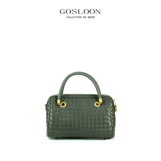 法国GOSLOON古士龙高端双面羊皮手工编织手提包单肩斜挎包