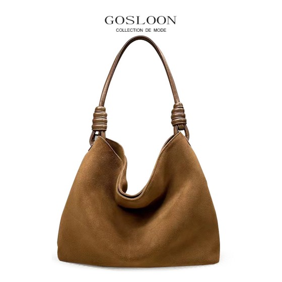 法国GOSLOON古士龙反绒牛皮大容量托特包单肩斜
