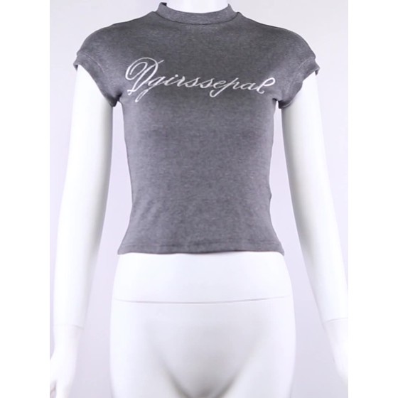 2025跨境欧美风春季新款女装纯色修身街头时尚圆领短袖印花上衣女