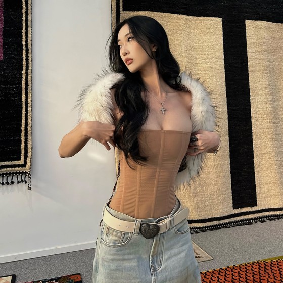 2025跨境欧美风春季新款女装纯色修身街头时尚一字领裹胸露背背心