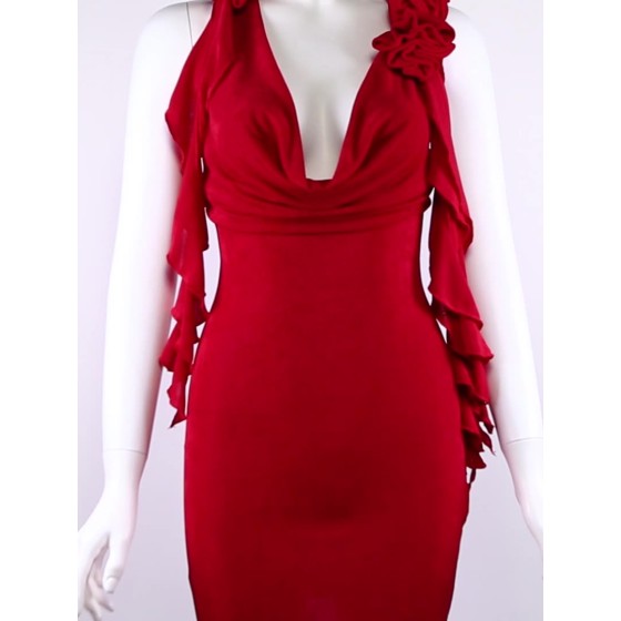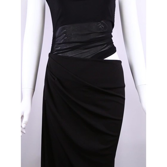 跨境欧美风2025WISH春夏季新款纯色性感斜领修身镂空包臀连衣裙女