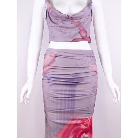 跨境2025欧美风春季新款女装纯色修身吊带背心时尚低腰半身裙套装
