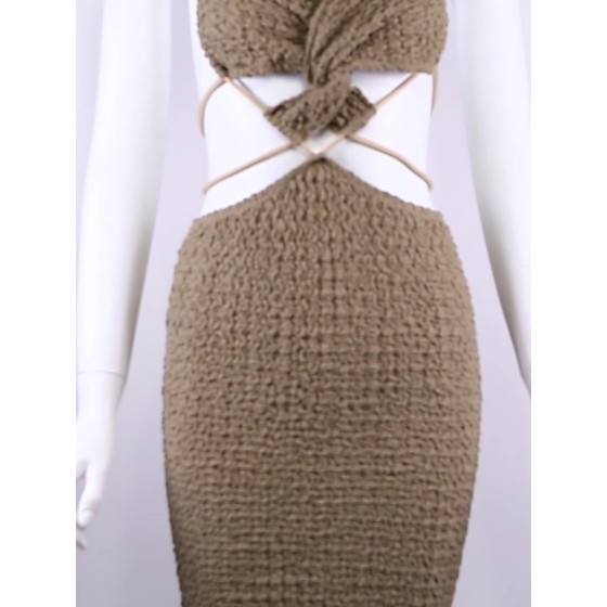 欧美风2025春夏季新款女装辣妹性感纯色裹胸镂空紧身包臀连衣裙女