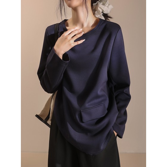 春秋女圆领套头垫肩下摆斜边卫衣设计小众气质休闲上衣MD5148