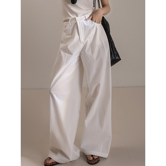 春夏纯棉砂洗阔腿裤长裤宽松休闲日韩浅粉透气挺括有型MD5151