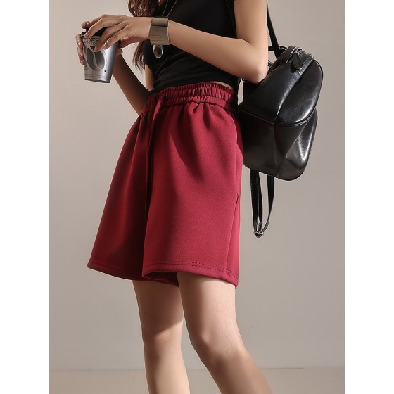 春夏女空气层棉针织短裤松紧腰抽绳日韩休闲宽松运动时尚MD5149