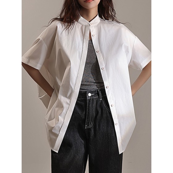 春夏100纯棉廓形立领短袖女衬衫衬衣挺括有型透气休闲宽松MD5132