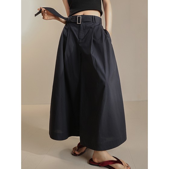 春夏季女带腰带捏褶九分阔腿裤宽松休闲纯棉裙裤裤子长裤MD5156